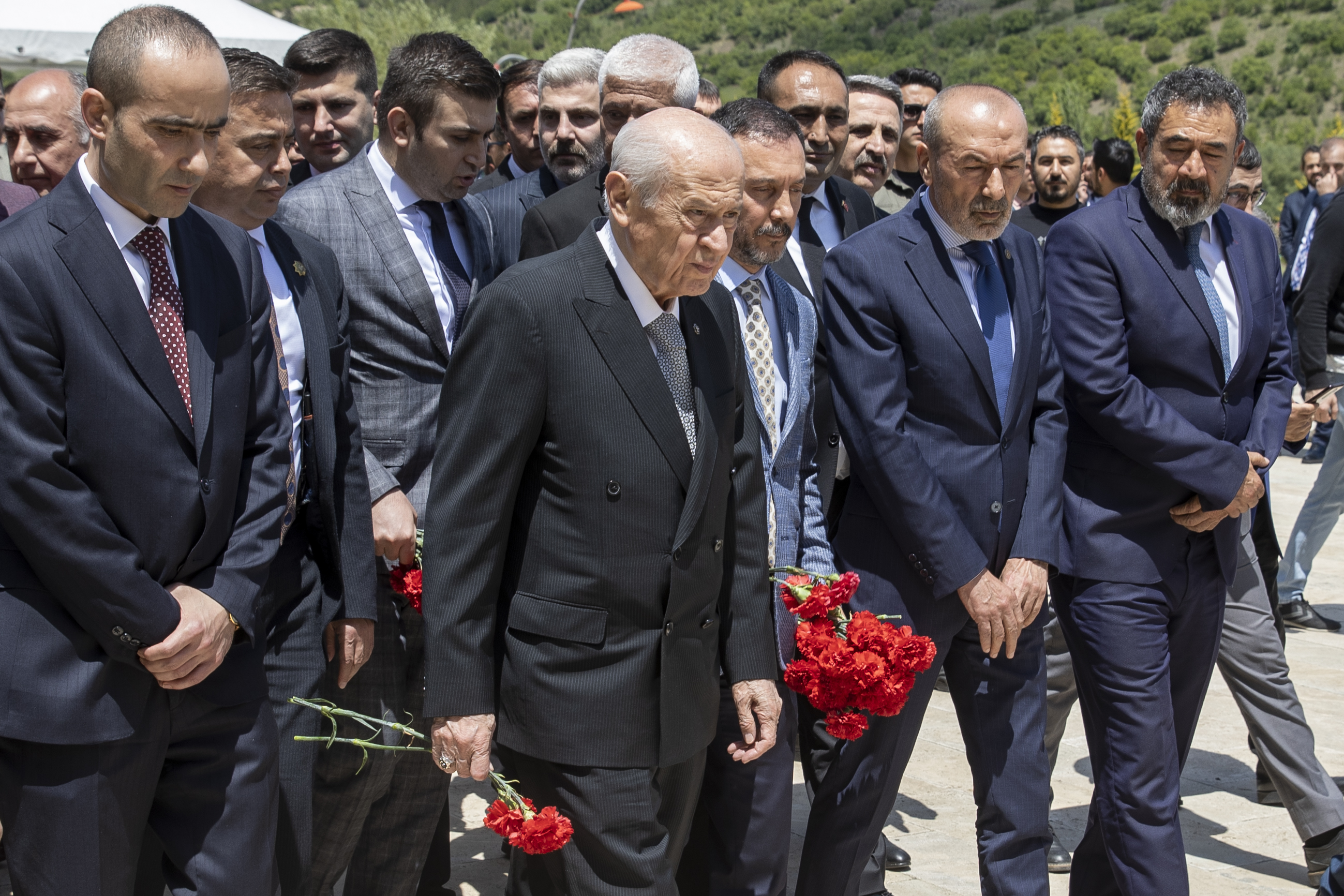 Kur'an-ı Kerim tilaveti ve duaların ardından Bahçeli, anıta kırmızı karanfil bıraktı.