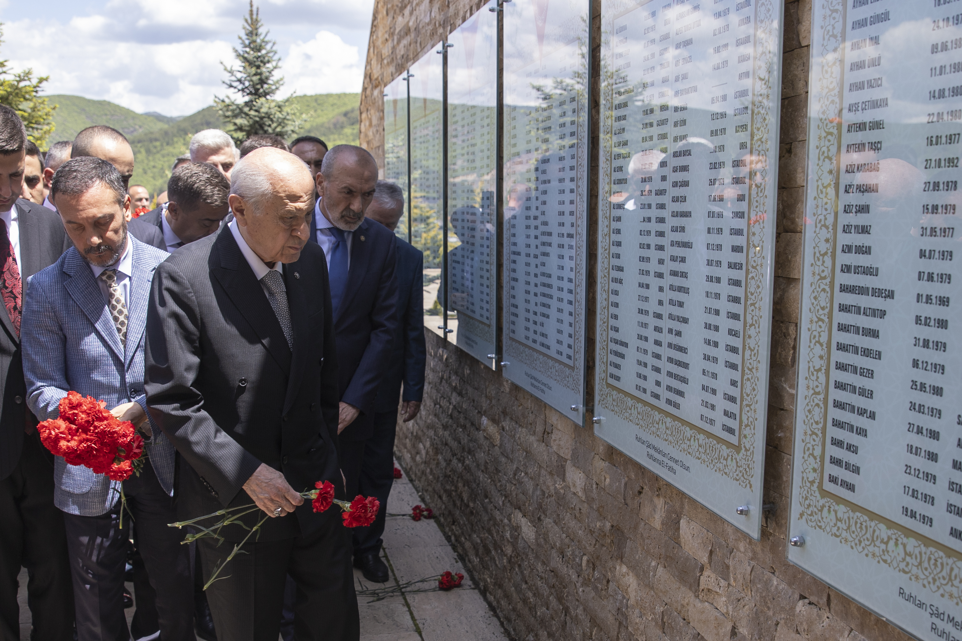 Bahçeli, burada yaptığı konuşmasına, ülkücü şehitlerin fani hayatın fazilet ve fedakarlık neferleri olduğunu, hiçbir dünyevi menfaate, çıkar hesabına, bayağı ve basit hevese tamah ve tenezzül etmediklerini belirterek, "Çünkü onlar iliklerine kadar Türk-İslam ülküsüne inanmış gönül ve dava insanlarıydı. Çünkü onlar sevdalarını pazarlık konusu yapmayı akıllarının ucuna dahi getirmeyen serdengeçti yüreklerdi. İkbal hırsıyla değil, istiklal heyecanıyla yanıp tutuşmuşlardı." dedi.