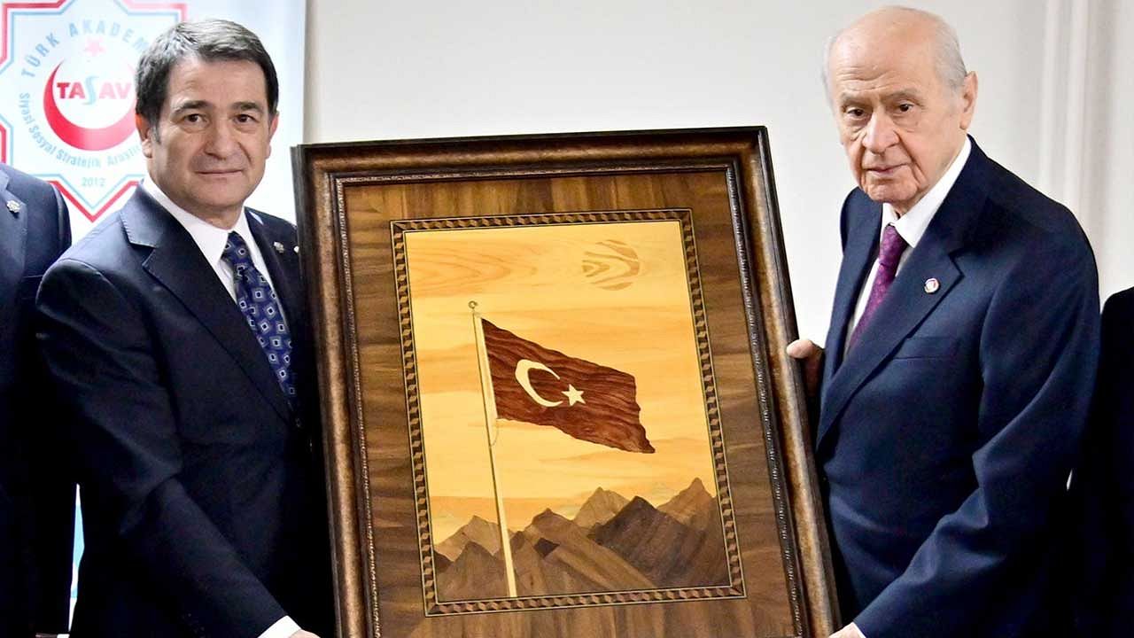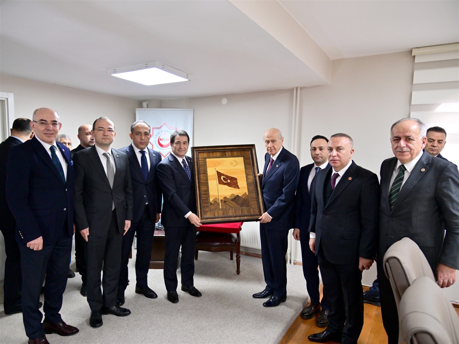 Ziyaret sonrası TASAV Başkanı, MHP Genel Başkan Yardımcısı ve İstanbul milletvekili İsmail Faruk Aksu tarafından MHP Lideri Bahçeli’ye özel bir tablo hediye edildi. Türk bayrağı motiftini taşıyan ve el işçiliğiyle 6 ayda hazırlanan tablo, 6 ayrı ağaçtan boya kullanılmaksızın kakma yöntemiyle hazırlandı.