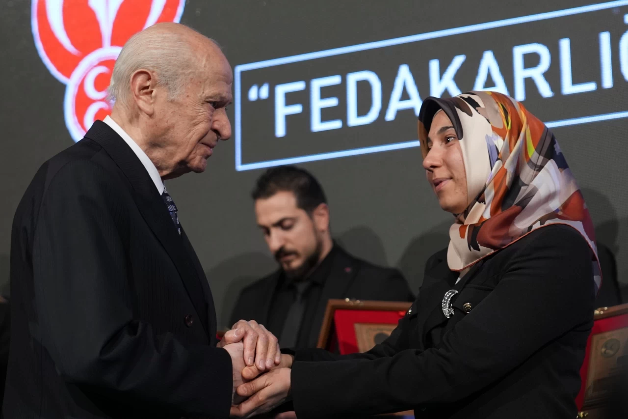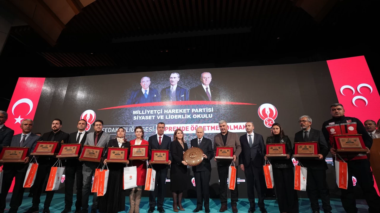 MHP Lideri Devlet Bahçeli, depremzede fedakar öğretmenlere plaket verdi. Bahçeli, öğretmenlere verdikleri destek ve gösterdikleri cesaretten dolayı teşekkür etti.