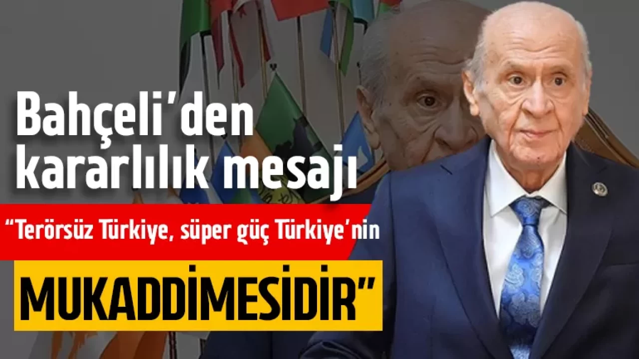 Terörle mücadelede kararlılık vurgusu yapan Bahçeli, “Terörsüz Türkiye” hedefinin bir an önce hayata geçirilmesi gerektiğini söyledi: