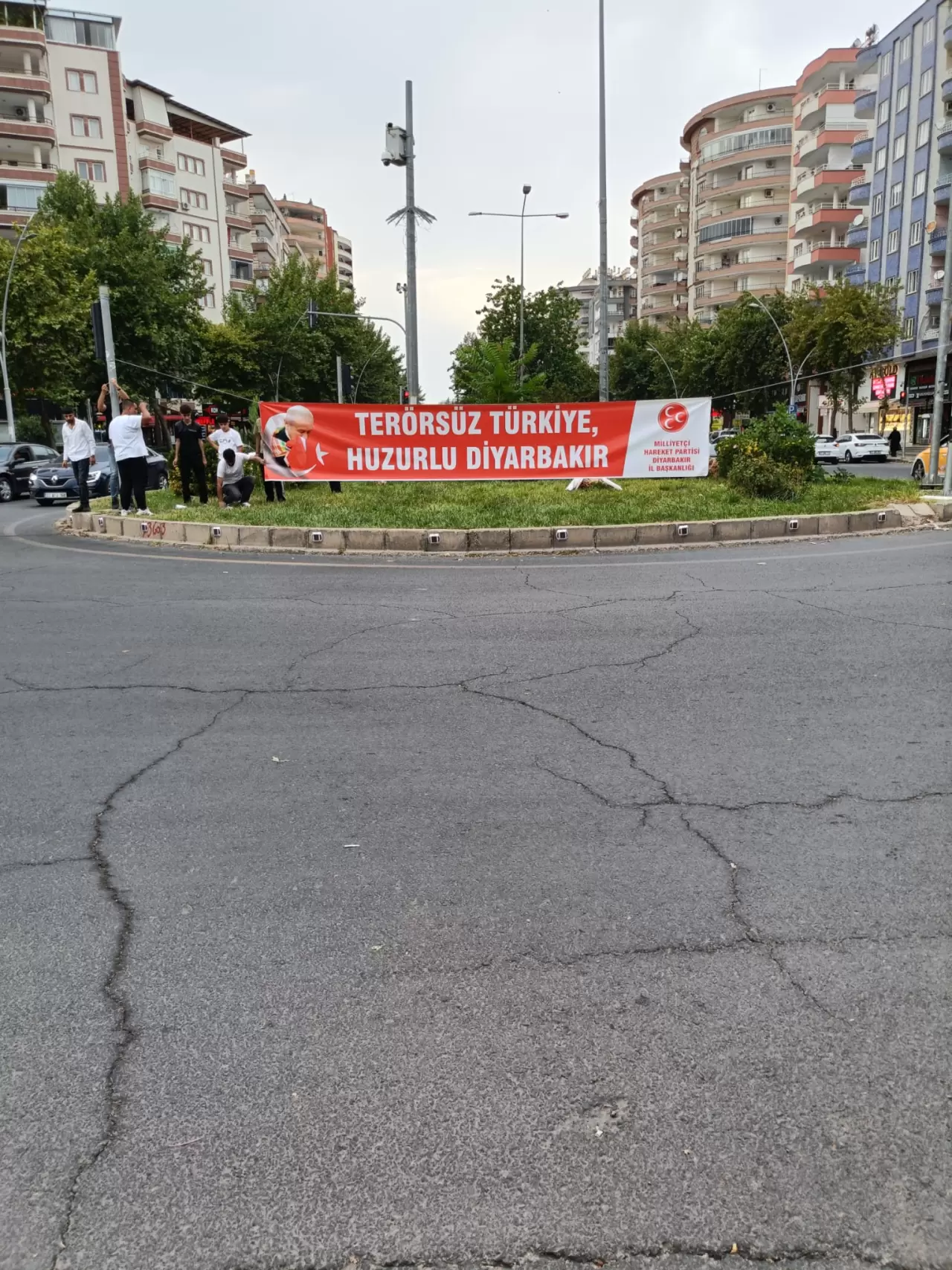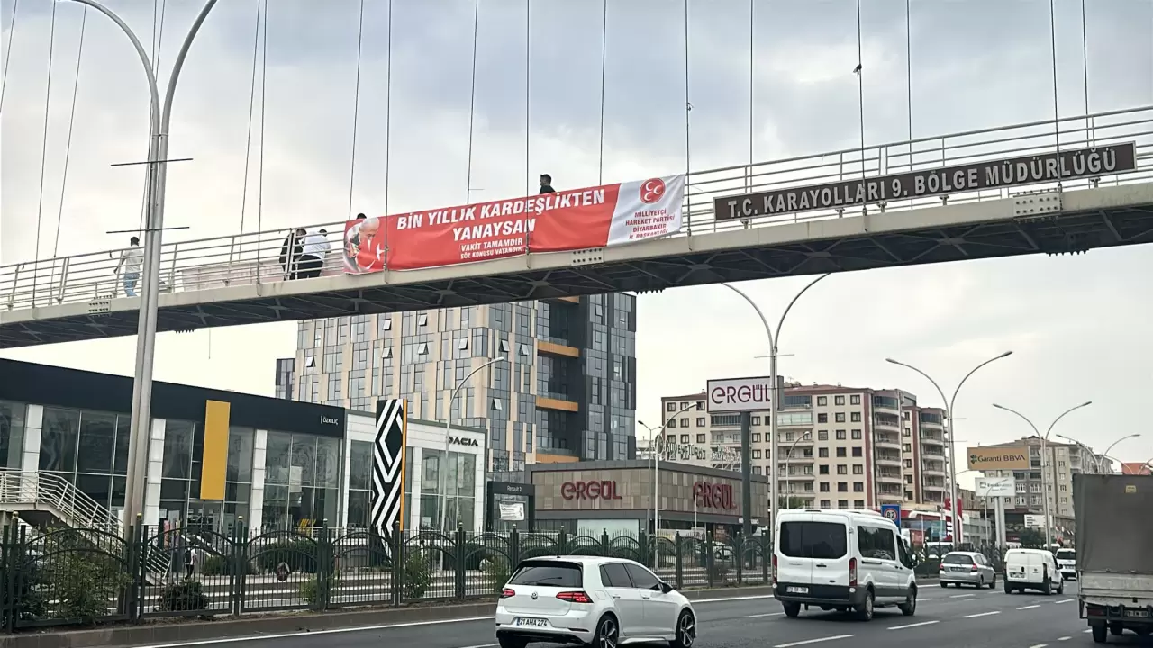 MHP Diyarbakır İl Başkanlığınca kentte sokaklara "Terörsüz Türkiye" sürecine destek için pankart asıldı.