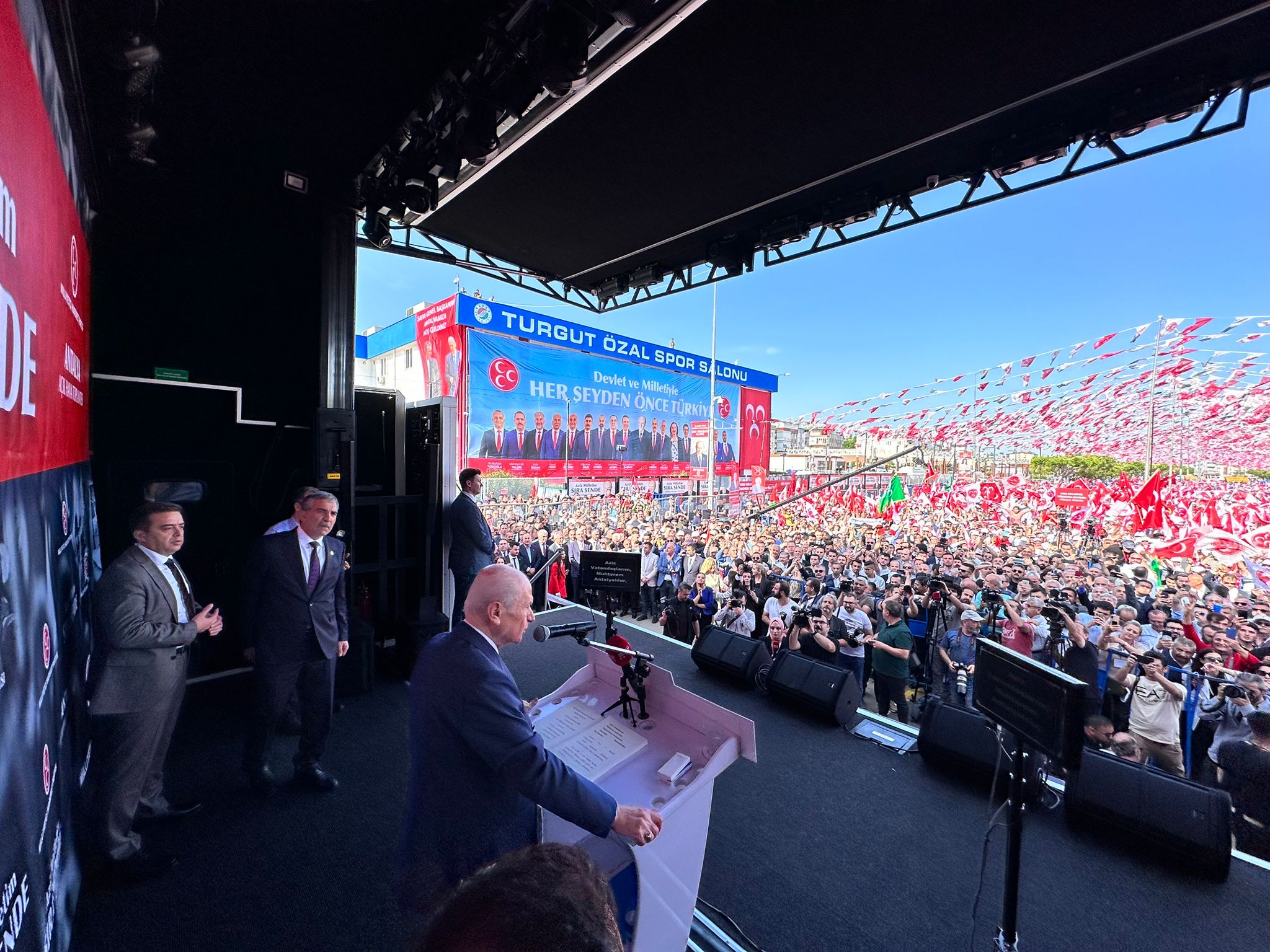 Milliyetçi Hareket Partisi Genel Başkanı Devlet Bahçeli 14 Mayıs'ta Aziz Milletim Sıra Sende Toplantılarının üçüncü ve son durağı olan Antalya Kepez Miting Alanı'nda vatandaşlarla bir araya geldi.