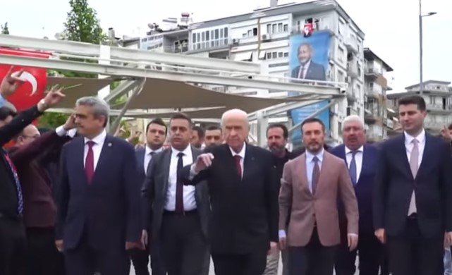Kılıçdaroğlu ve ittifak ortakları Türkiye’nin karşısında, biz yanındayız. Kılıçdaroğlu ve ittifak ortakları doğal gaz ve petrol keşfinin karşında, biz yanındayız. Kılıçdaroğlu ve ittifak ortakları ilk yerli ve milli otomobil TOGG’un karşısında, biz yanındayız. Kılıçdaroğlu ve ittifak ortakları savunma sanayimizin göz bebekleri olan Hürkuş’un, Milli Muharip Uçağı Kaan’ın karşısındadır, biz yanındayız. Kılıçdaroğlu ve ittifak ortakları, Bayraktar şirketinin, İHA ve SİHA’ların, TCG Anadolu’nun ve Kızılelmanın karşısındadır, biz sonuna kadar yanındayız. Biz Cumhur İttifakı’yız. Biz hep birlikte Türkiye’yiz. Zillet ittifakı İmralı canisinin, teröristbaşı Gülen’in, PKK’nın, Firavun’un, müstevlilerin, sömürgecilerin yanındadır, Milliyetçi Hareket Partisi ve Cumhur İttifakı mazlumların, gariplerin, emeklilerin, çiftçilerin, işçilerin, esnafların, ülkemizi büyütme, geliştirme ve zenginleştirme mücadelesi veren iş adamlarımızın, nihayet Aydın’ın arkasındadır.