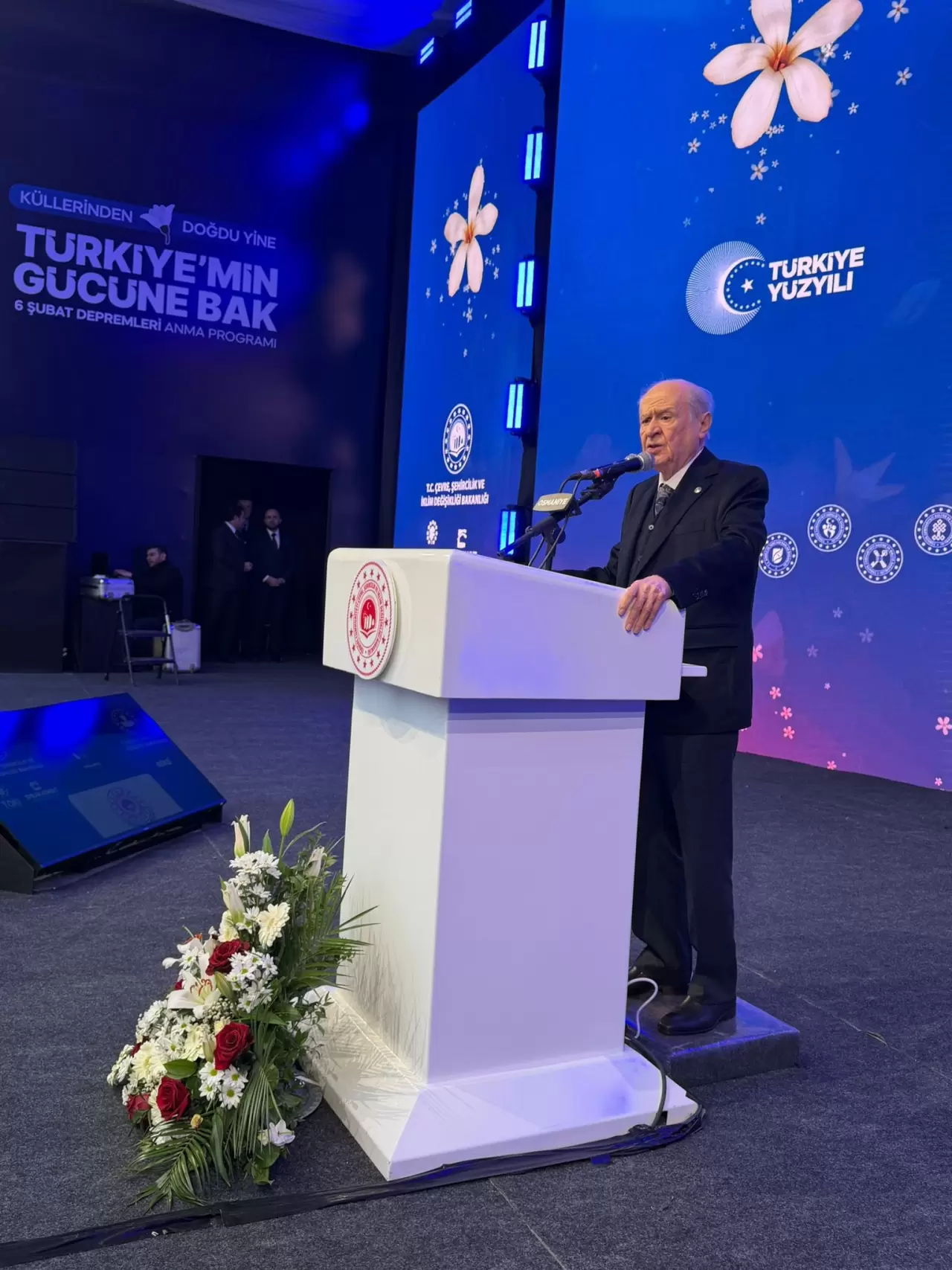 Milliyetçi Hareket Partisi (MHP) Genel Başkanı Devlet Bahçeli, Osmaniye'de düzenlenen "6 Şubat Depremleri Anma Programı ve Yapımı Tamamlanan Yatırımların Toplu Açılış Töreni"nde konuşma yaptı.