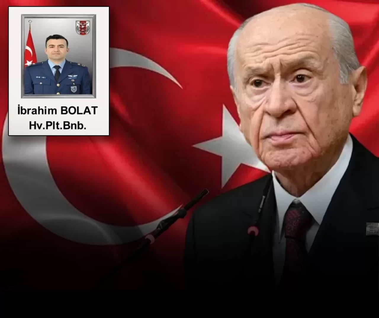 Milliyetçi Hareket Partisi (MHP) Genel Başkanı Devlet Bahçeli, Balıkesir'de, 9. Ana Jet Üssü Komutanlığı filosuna ait F-16 uçağının kaza kırıma uğraması sonucu Hava Pilot Binbaşı İbrahim Bolat'ın şehit olması üzerine yazılı bir açıklama yaptı.