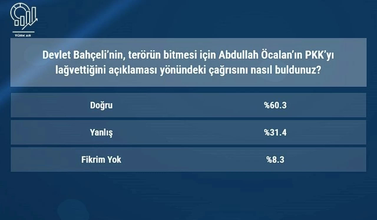 Anket sonuçlarına göre, katılımcıların %60.3'ü Bahçeli'nin çağrısını "doğru" bulurken, %31.4'ü ise bu çağrıyı "yanlış" olarak değerlendirdi.