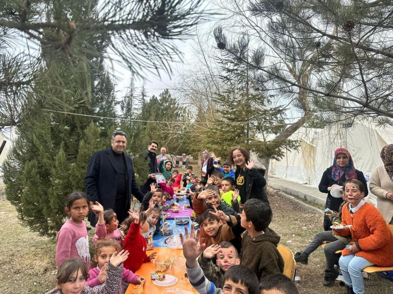 MHP Mersin İl Teşkilatı, Kahramanmaraş Afşin de çadırkentte yaşayan çocuklara Mersin'li teyzelerinin yapmış olduğu kek, kurabiye ve pastaları ulaştırdı.