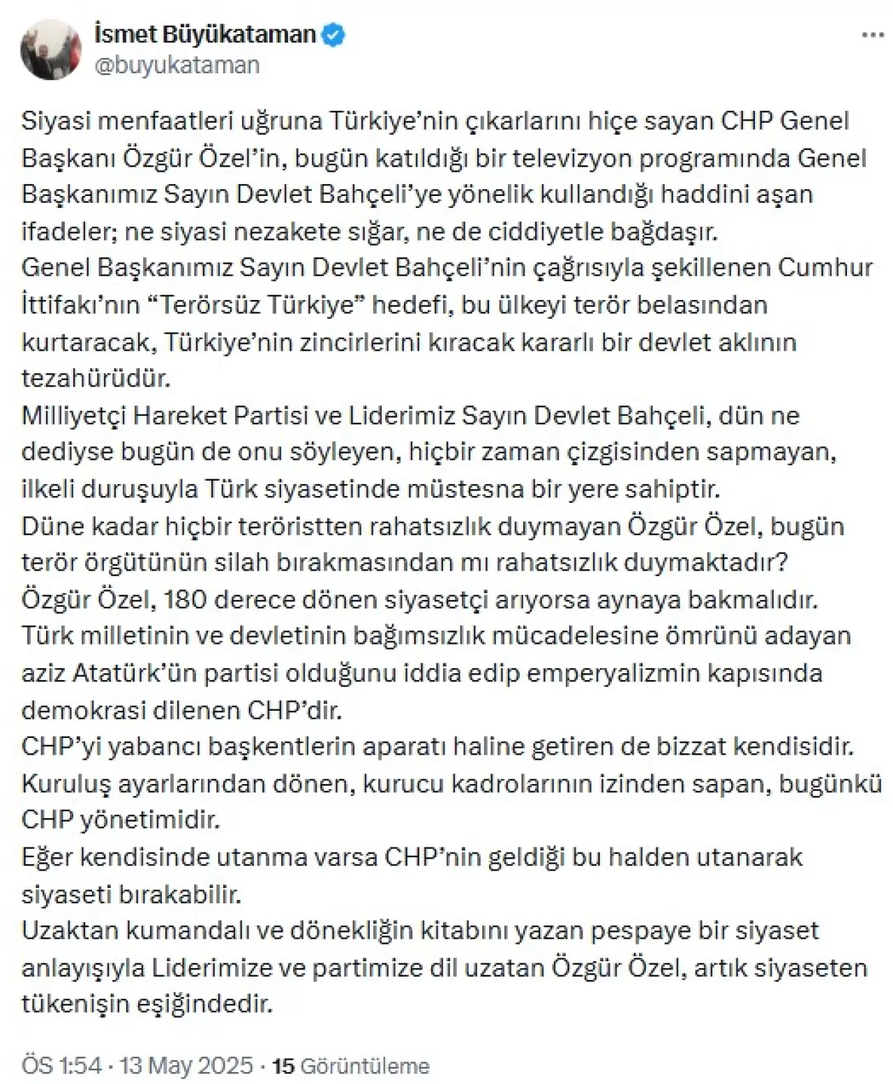 MHP'li İsmet Büyükataman'ın açıklamasının tamamı: