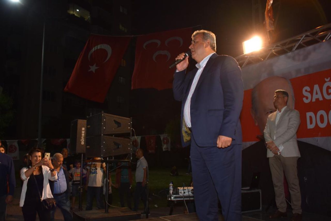 MHP Adana’da düzenlediği son mahalle toplantısında da yine gövde gösterisi yaptı. Seyhan İlçe Başkanlığı’nca Fatih Mahallesi’nde düzenlenen toplantıda halkın katılımı, coşkusu ve heyecanı dikkat çekti. Toplantıda “Bir oy MHP’ye, bir oy Cumhurbaşkanı Erdoğan’a” mesajı verildi.