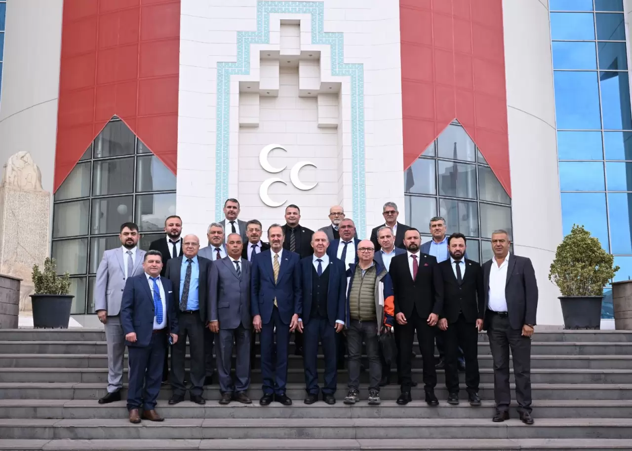 Ankara’ya gelen Ziraat Odası Başkanlarını ve Kooperatif Başkanlarını Türkiye Büyük Millet Meclisinde karşılayan Osmanağaoğlu, heyeti MHP Genel Merkezi’nde ağırladı.