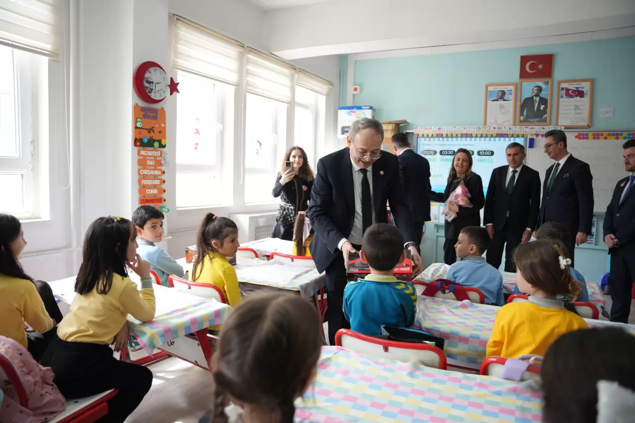 Öğretmenlerin emekleri sayesinde Türkiye'nin geleceğinin huzurlu ve mutlu olacağını belirten Topsakal, "Biz de onların bu kıymetli çalışmalarına bir nebze katkı sunmak ve yanlarında olmak amacıyla ziyaretimizi gerçekleştirip hediyelerimizi takdim ediyoruz" ifadelerini kullandı.