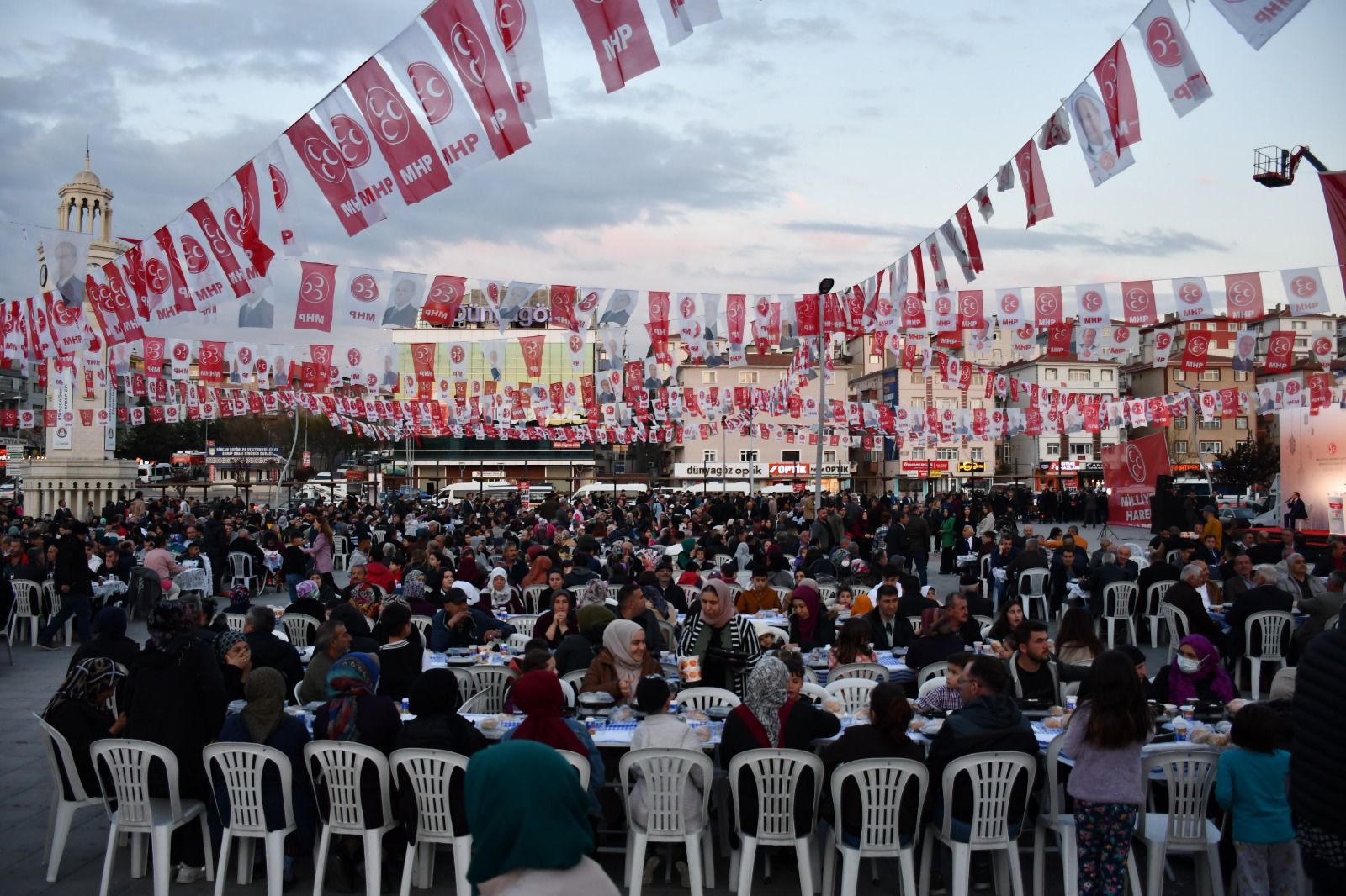 Sincan Kent Meydanı’nda düzenlenen ve vatandaşların yoğun bir ilgi gösterdiği iftar yemeğinde konuşan Yıldırım, “Daha güçlü Türkiye için Cumhur İttifakı’na desteğinizi istiyoruz. Birinci turda Sayın Cumhurbaşkanımız Erdoğan’ı seçtirmek için desteğinizi istiyoruz. Mecliste daha güçlü MHP için 3 Hilal’e oylarınızı bekliyoruz. Gavurla yatıp, gavurla plan kuranlara Allah fırsat vermesin!” dedi.