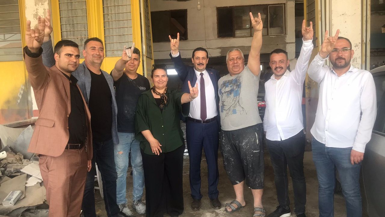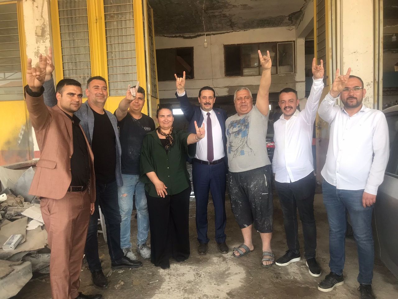 Zeyneli Hacı Mustafa Turgut Sanayi Sitesi Kooperatifi bünyesinde faaliyet gösteren esnafları ziyaret eden MHP Mersin Milletvekili Adayları Kıvanç Derya ve Av. Kürşat Türker Ercan, cumhur ittifakının önemini anlatarak 14 Mayıs seçimlerinde Cumhurbaşkanı Erdoğan’a ve partileri MHP’ne oy istediler.