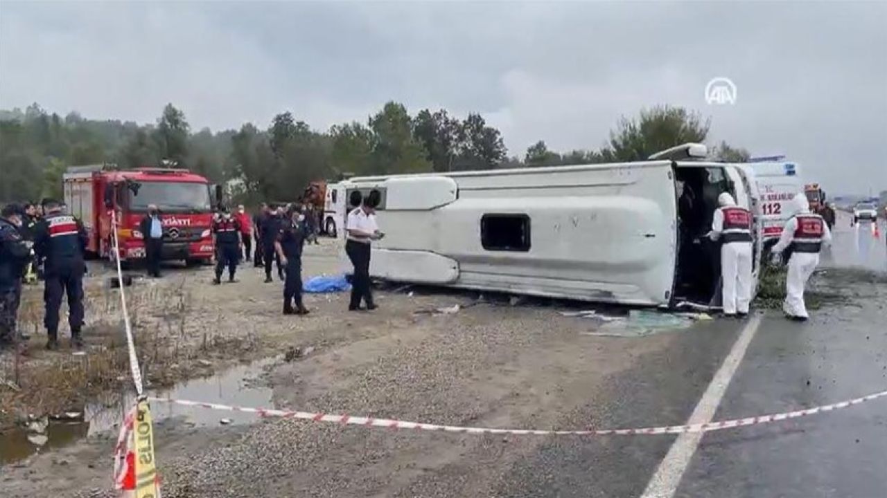 Bartın-Ankara kara yolunda MHP Bölge İstişare Toplantısı'na katılmak için Ankara'ya giden Ramazan Duduoğlu idaresindeki 74 AJ 900 plakalı midibüs, Esenyurt mevkisinde kontrolden çıkarak devrildi.