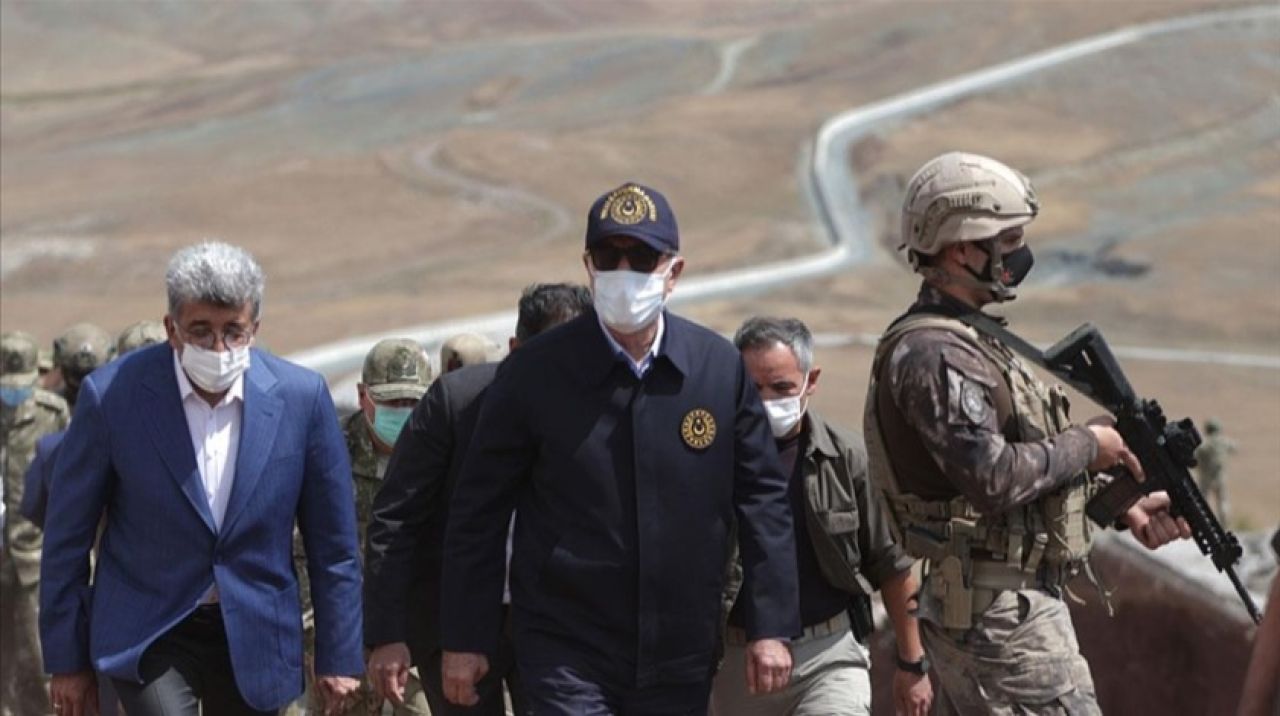Buradan helikopterle sınır hattı boyunca incelemelerde bulunan Akar ve komutanlar daha sonra sıfır noktasındaki 2 bin 618 rakımlı Kocaçukur Tepe gözetleme mevzisine gitti.