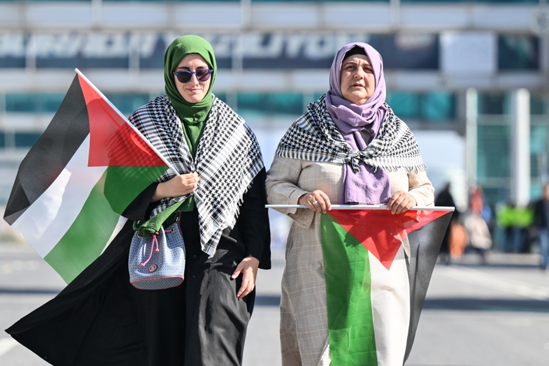 Miting alanına 12 ayrı giriş kapısında oluşturulan güvenlik noktalarından geçerek alınan vatandaşların, ellerinde Türk bayrağı ile Filistin bayrağı taşıdıkları görüldü. Şehir dışından katılım gösteren vatandaşlar da miting alanına gelmeye başladı.
