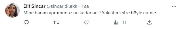 Elif Sincar ise "Mine hanım yorumunuz ne kadar acı! Yakıştı mı size böyle cümle…" derken, Uğur Çoban isimli sosyal medya kullanıcısı ise "Ablacım kötü bir yorum yapmışsın göç eden çekirge sürüsü Kabe'ye denk gelmiş. Doğal bir olay. Yakışmadı sana…" şeklinde yazdı.