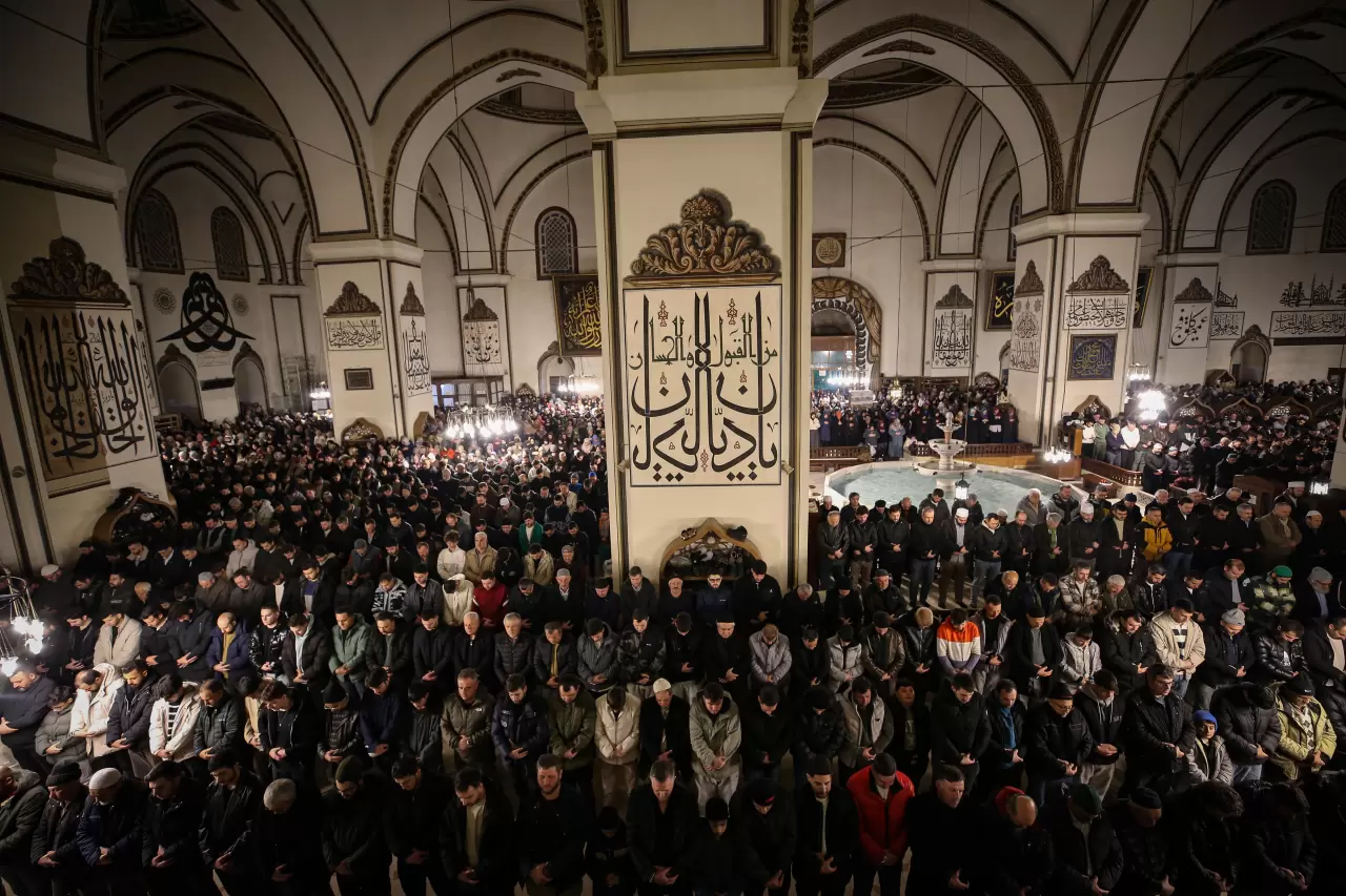 Bursa’da tarihi Ulu Camii’nde gerçekleştirilen kandil programlarında Kur’an-ı Kerim okundu, ilahiler seslendirildi ve dualar edildi.