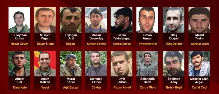 Etkisiz hale getirilen teröristlerden bazıları şöyle;