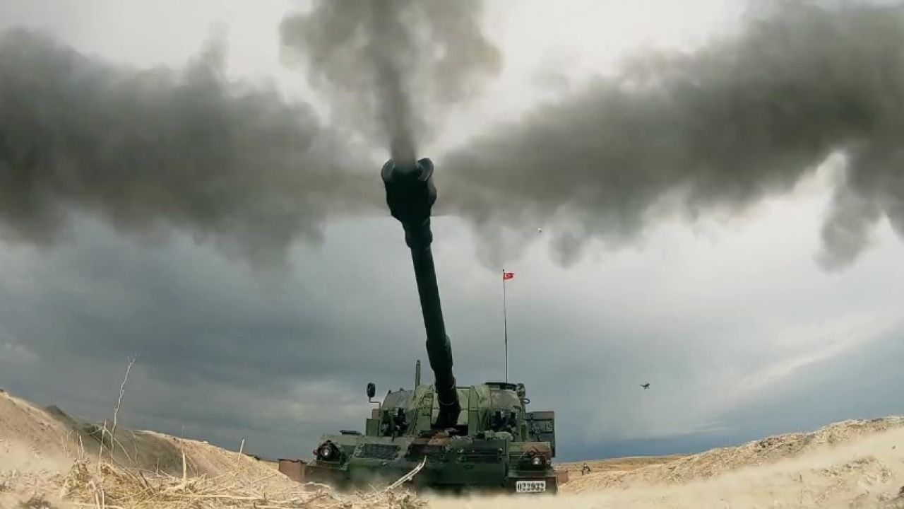 Nefes kesen görüntülerin yer aldığı paylaşımda, "Duysun bunu, kâinatta herkes, kahraman Türk Topçusunun sesidir, bu heybetli, gürleyen ses" ifadeleri yer aldı.