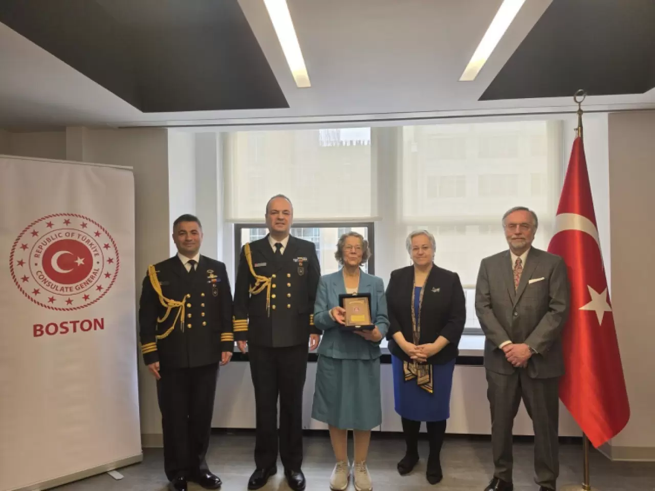 “4 Nisan 1953 tarihinde Çanakkale Boğazı'nın sularına emanet ettiğimiz TCG Dumlupınar'daki 81 şehit denizcimizin hatırasının yaşatılmasına katkı sağlayan Muazzez Kumrucu-Lohmiller ile Boston Başkonsolosluğumuzda bir araya geldik. 18 Mart Şehitler Günü ve Çanakkale Deniz Zaferi dolayısıyla düzenlenen törene iştirak eden Muazzez Kumrucu-Lohmiller'e Washington Deniz Ataşemiz Albay Sabri Haluk Orhon tarafından Deniz Kuvvetleri Komutanlığı Anı Plaketi takdim edildi. Aziz şehitlerimiz için 'Dumlupınar' ismini uzayda ölümsüzleştiren Muazzez Kumrucu-Lohmiller'e teşekkürlerimizi sunuyoruz.”