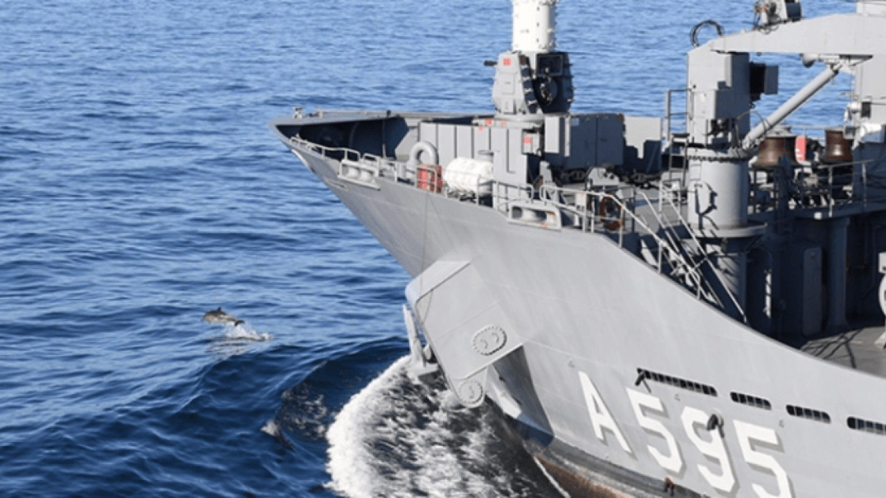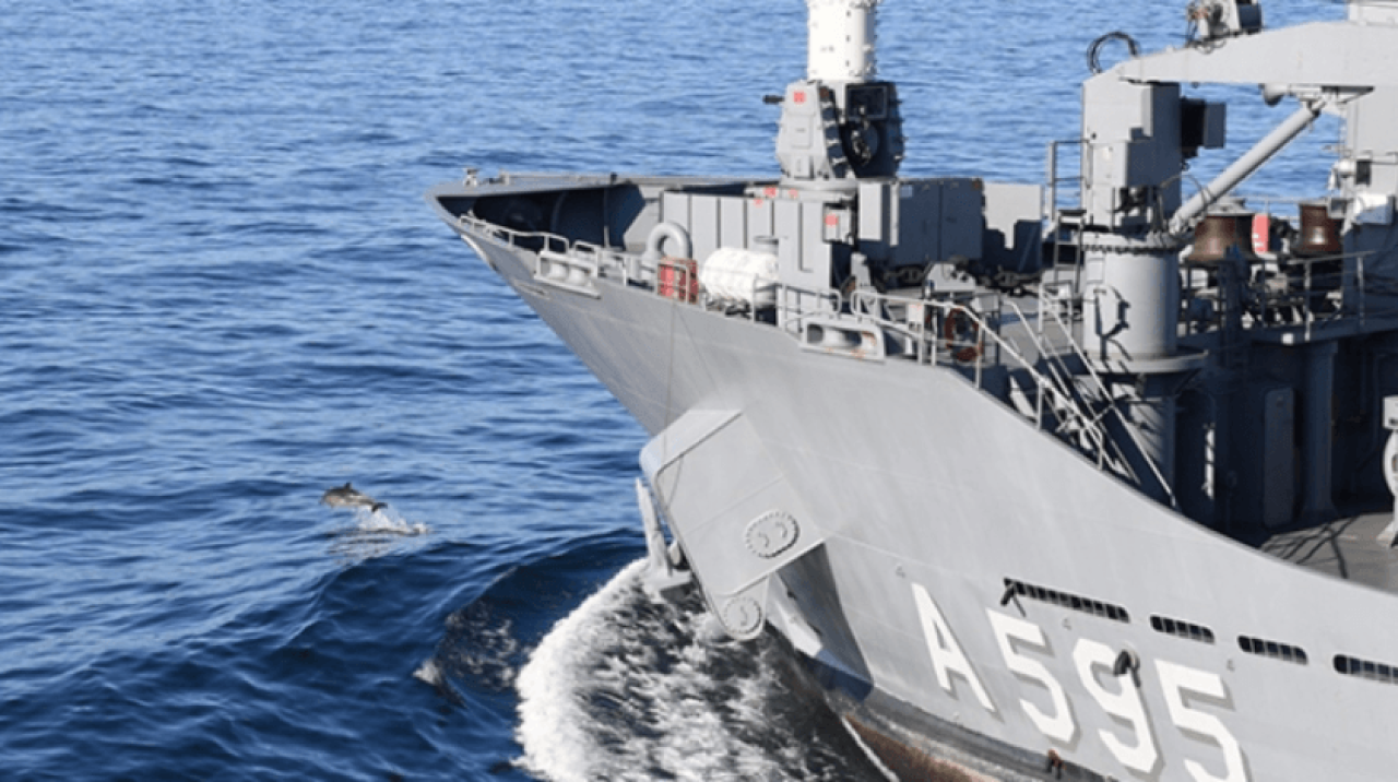 Paylaşımda, askeri gemilerle yol alan yunusların yer aldığı fotoğraflara da yer verildi.