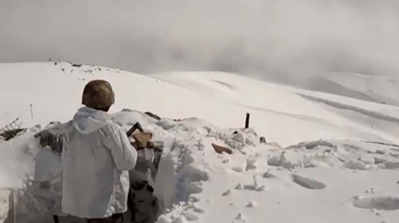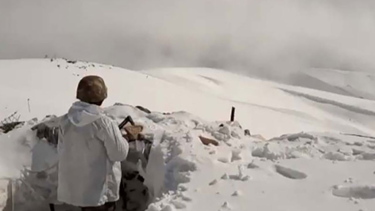 Bakanlığın sosyal paylaşım sitesi Twitter'daki hesabından, Hakkari'nin 3 bin 170 rakımlı İkiyakalar Dağı'nda eksi 10 derecede görev yapan askerin görüntüleri paylaşıldı.