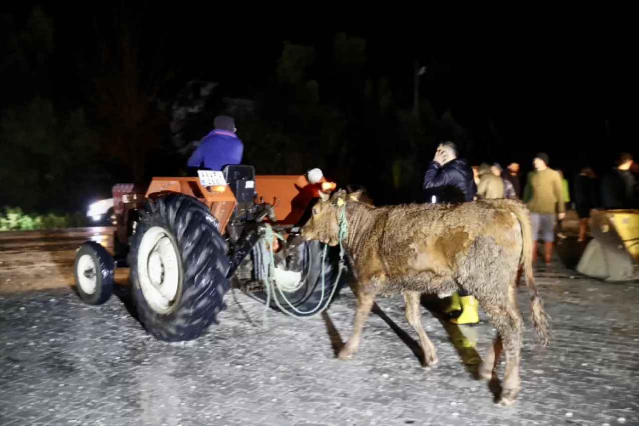 Bazı vatandaşlar, traktörleriyle kendi imkanlarıyla bölgeden ayrılırken, traktörlerin arkasına bağlanan büyükbaş hayvanlar da güvenli bölgelere götürüldü.