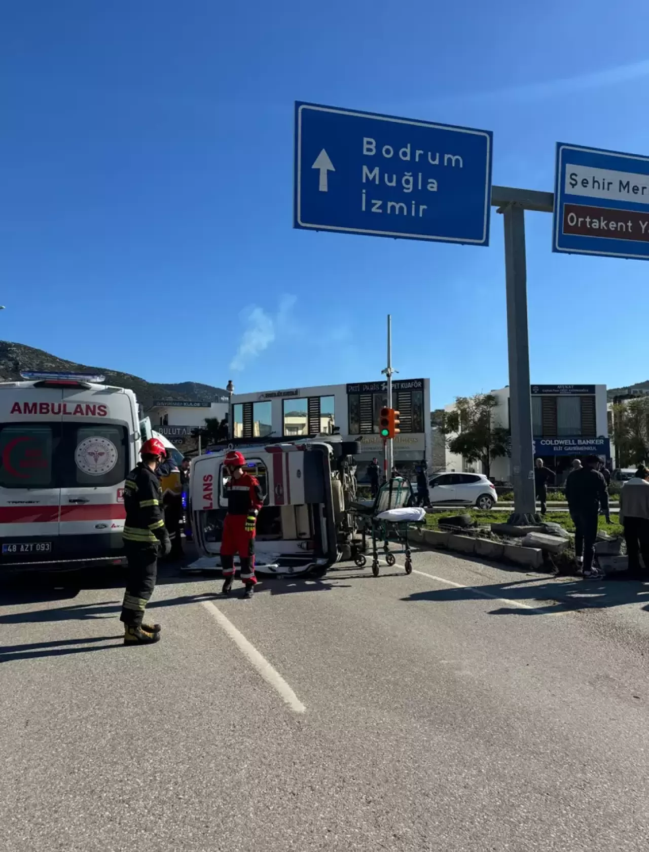 Muğla'nın Bodrum ilçesinde, kontrolden çıkan ambulansın devrilmesi sonucu hasta ve sağlık personelinin olduğu 4 kişi yaralandı.