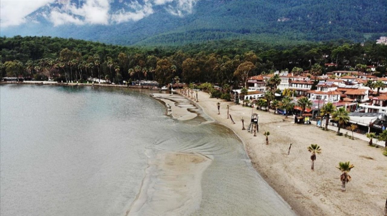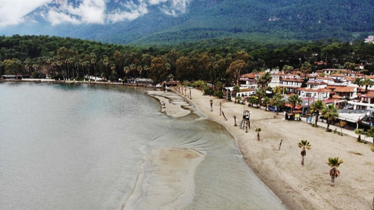 Muğla'nın Ula ilçesindeki Akyaka sahilinde deniz suyu kıyıdan yaklaşık 40 metre çekildi.