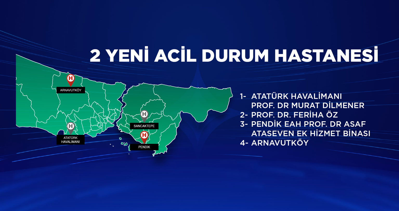 İstanbul’un mevcut 2 acil durum hastanesine ek olarak biri Arnavutköy’de diğeri Pendik’te olmak üzere 2 yeni acil durum hastanesi yapılacak.