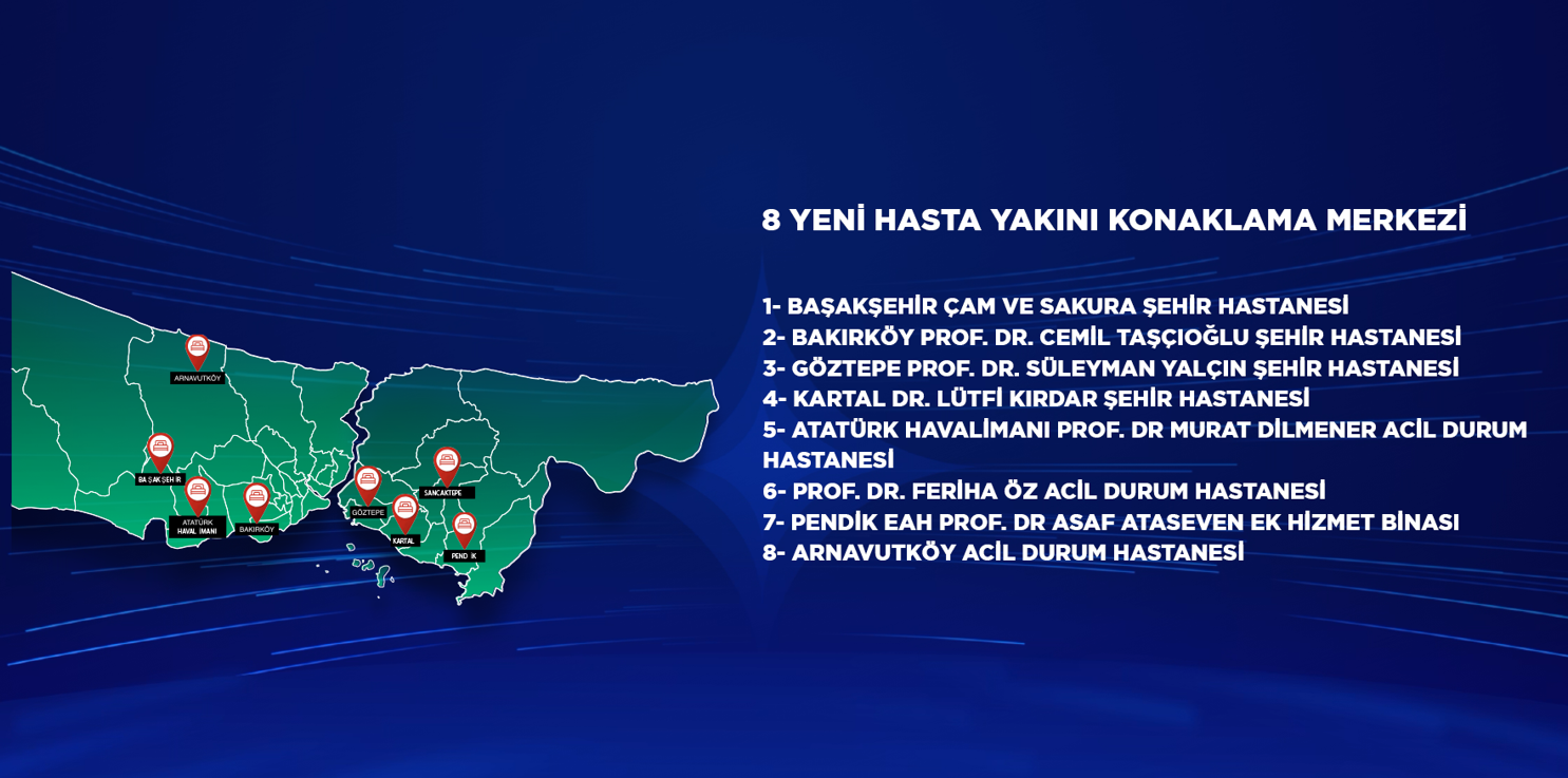 Her iki yakaya dörder adet olmak üzere, afet zamanlarında acil müdahale ekiplerinin konaklayacağı, normal zamanlarda hasta yakınlarının faydalanacağı 8 hasta yakını konaklama merkezi kurulacak.