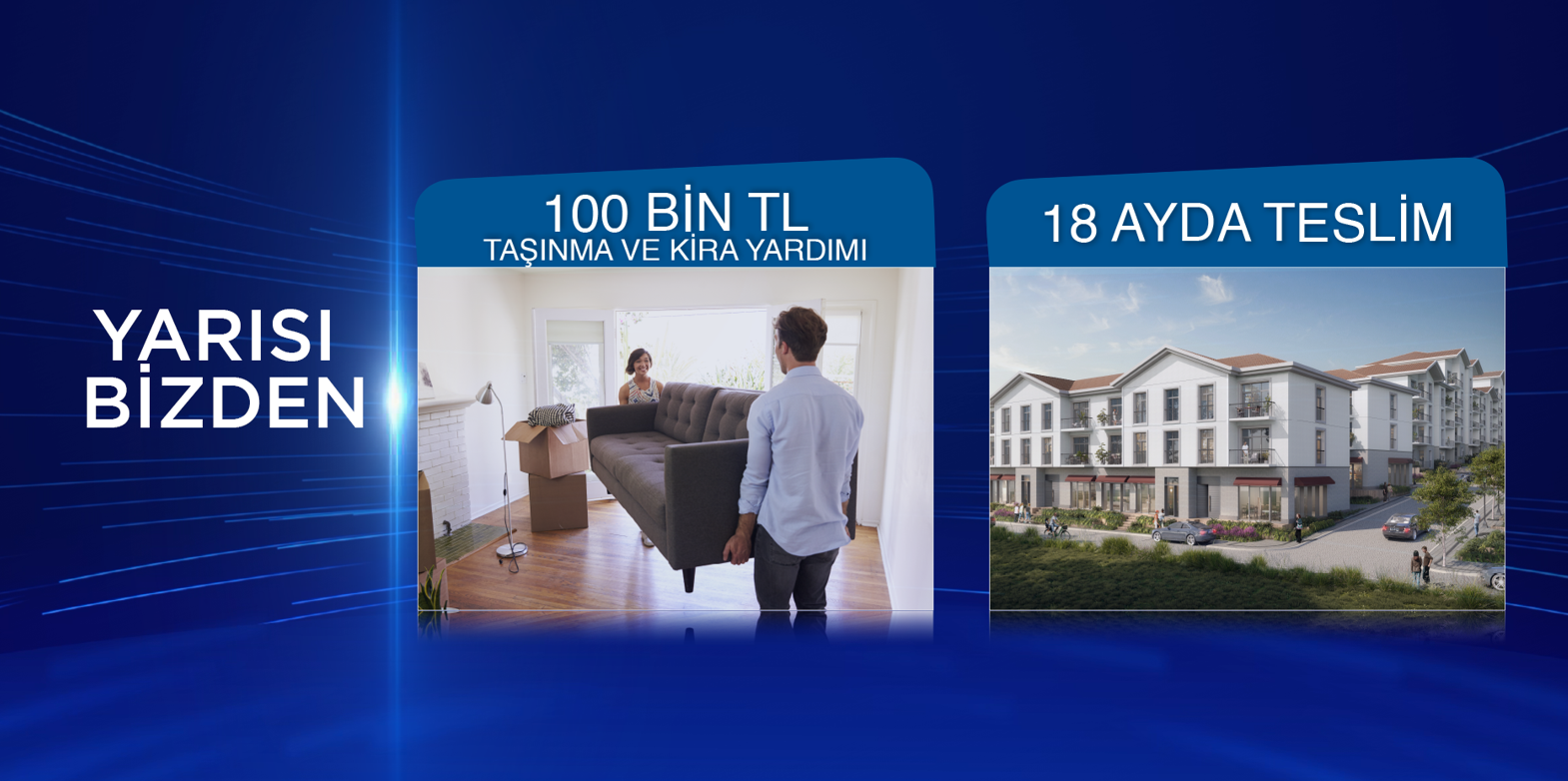 100 bin lira da taşınma ve kira yardımı ödenecek. Evler 18 ayda teslim edilecek.
