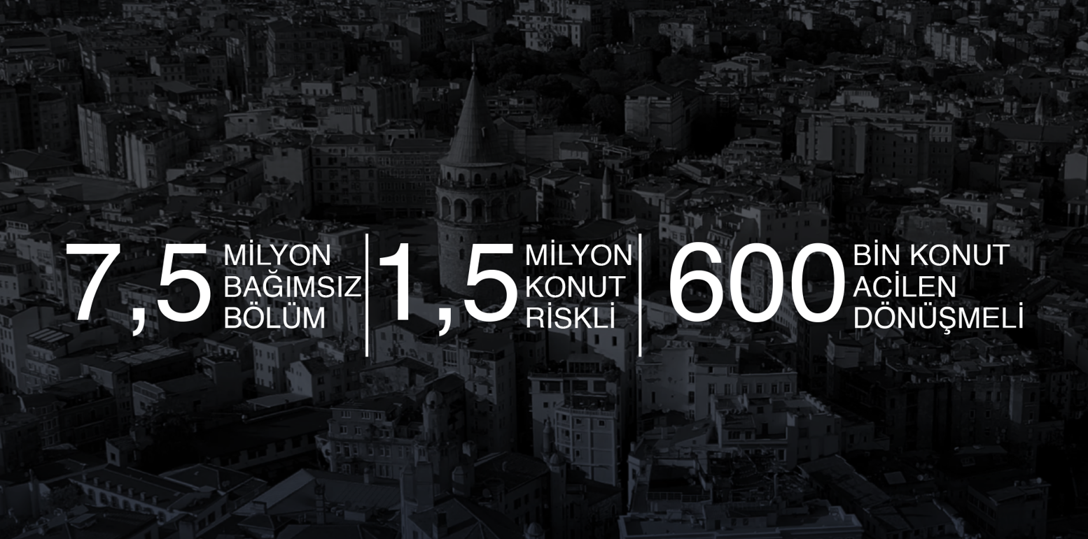 Afetlere dirençli, risksiz bir İstanbul için 5 yılda 650 bin konut inşa edilecek. Kentsel dönüşüme özel 100 bin sosyal konut yapılacak. Yeni yapılanmada yatay mimari ağırlıklı, nüfusu artırmayacak doğru bir planlama yapılacak.
