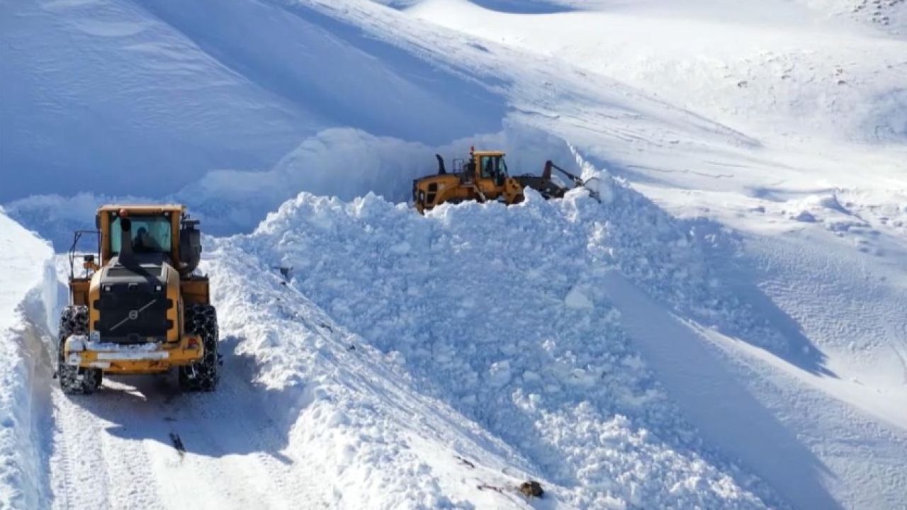 Özellikle kar kalınlığının 5 metreyi bulduğu kısımlarda ilerlemekte zorlanan ekipler, 1 kilometrelik yolu 1,5 saatte açabildi.