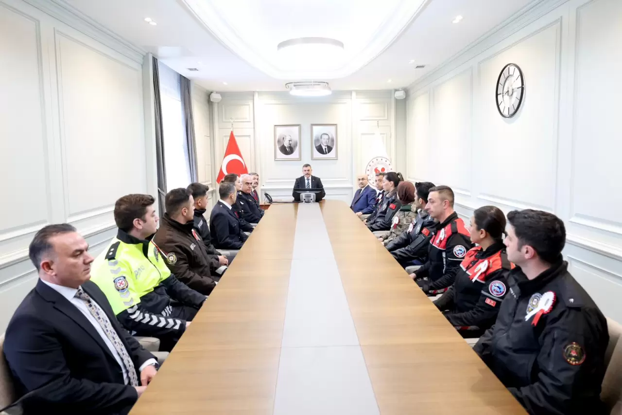 "İçişleri Bakanımız Sayın Mustafa Çiftçi, Türk Polis Teşkilatımızın 181. kuruluş yıl dönümü vesilesiyle Bakan Yardımcımız Sayın Ali Çelik ile Emniyet Genel Müdürümüz Sayın Mahmut Demirtaş ve beraberindeki heyeti makamında kabul etti. Gerçekleştirilen kabulde, teşkilatın yürüttüğü çalışmalar, üstlendiği sorumluluklar ve kamu düzeninin sağlanmasına yönelik faaliyetler ele alındı. Sayın Bakanımız, aziz milletimizin huzur ve güvenliği için gece gündüz fedakarca görev yapan polislerimizin Polis Haftası'nı kutlayarak, görevlerinde üstün başarılar diledi."