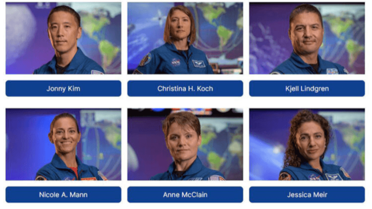 NASA tarafından açıklanan astronotların isimleri şöyle sıralandı: Joseph Acaba, Kayla Barron, Raja Chari, Matthew Dominick, Victor Glover, Warren Hoburg, Jonny Kim, Christina Koch, Kjell Lindgren, Nicole A Mann, Anne McClain, Jessica Meir, Jasmin Moghbeli, Kate Rubins, Frank Rubio, Scott Tingle, Jessica Watkins, Stephanie Wilson.