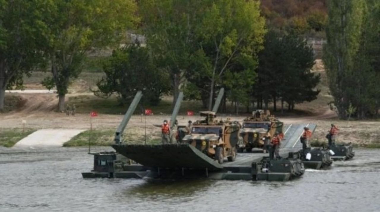 NATO Müttefik Kara Komutanlığı'nın sosyal medya hesabında yayımlanan görselde, önde yerli Vuran ve arkada nehir geçişlerinde kullanılan yerli üretim FNSS yapımı Samur ile beraber görev yapan Türk askeri yer aldı.