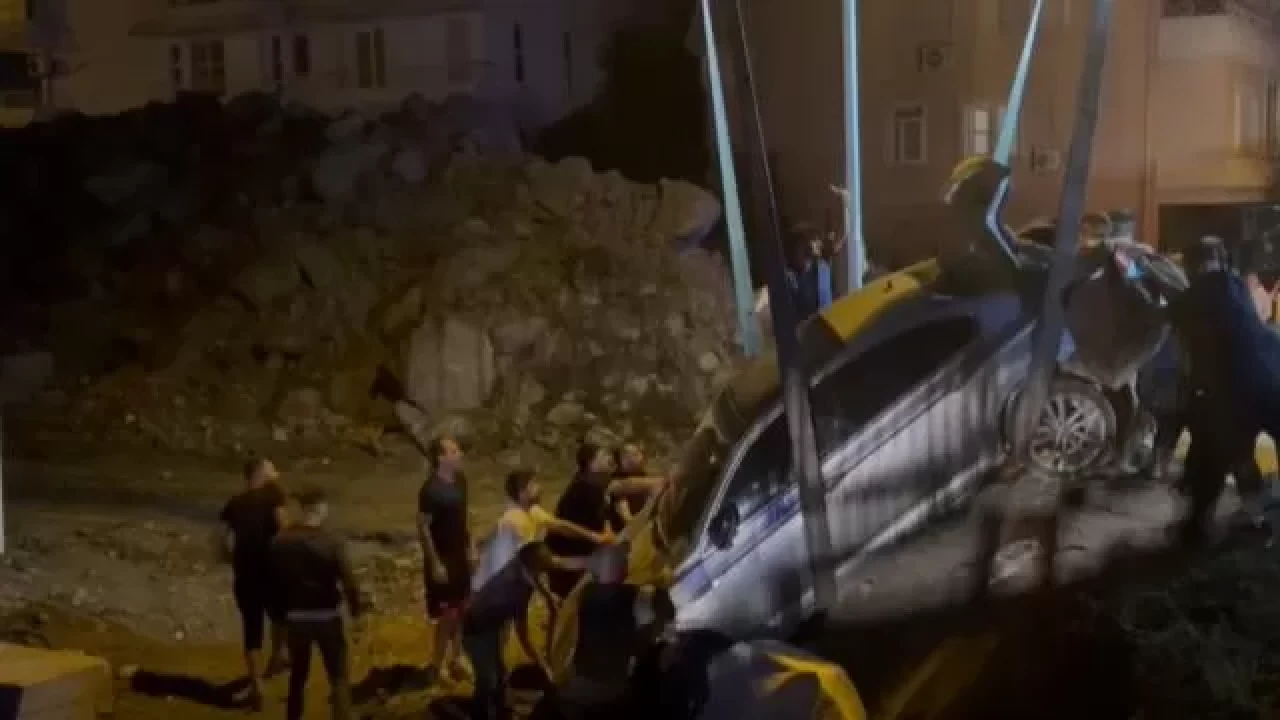 Sürücüsünün navigasyondan üzerinden Arsuz ilçesine gitmek istediği otomobil, Pirireis Mahallesi'nde depremde hasar alan ve yıkımı yapılan bina arazisine uçtu.