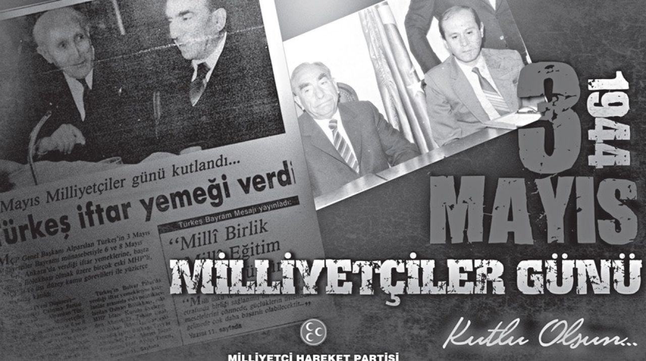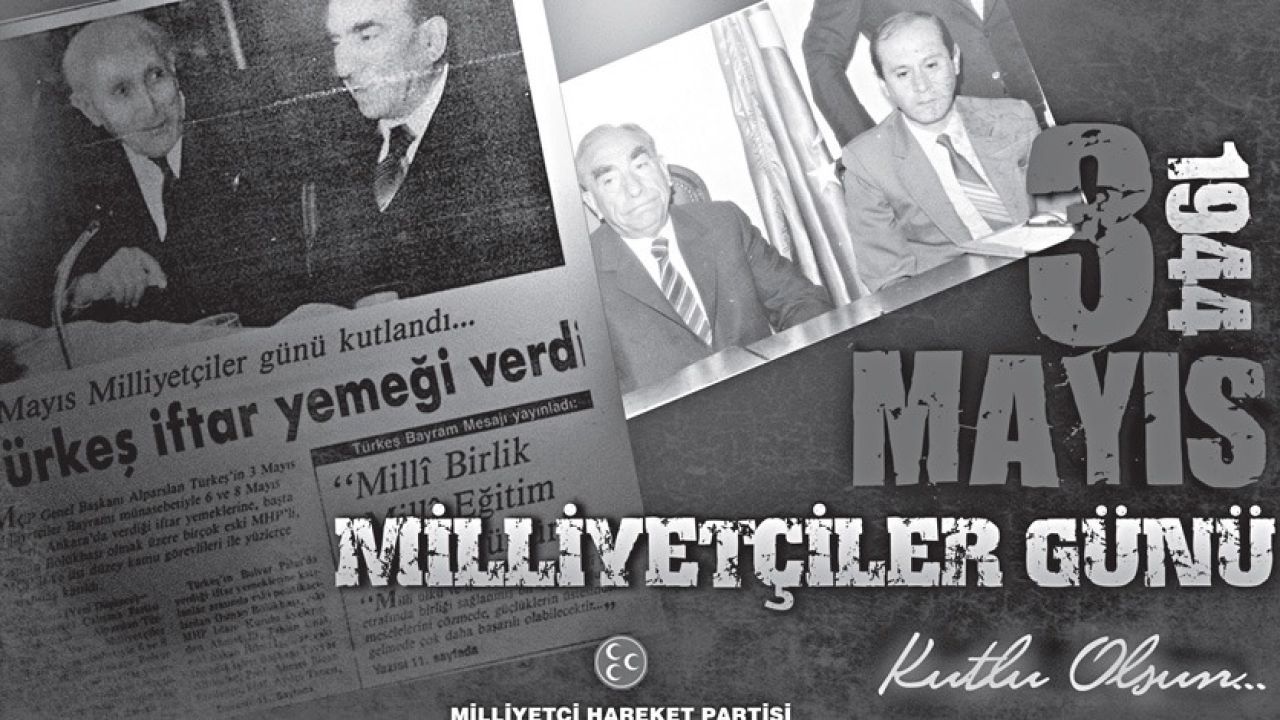 3 Mayıs Türkçüler Günü, 3 Mayıs 1944 günü Nihal Atsız başta olmak üzere, aralarında Başbuğ’umuzun olduğu bir grup Türk milliyetçisi aydının tutuklanması, tutukluluk sırasında işkenceler görmesi nedeniyle ve ayrıca Atatürk’ten sonra değişen yönetim politikasına karşı ilk milliyetçi çıkışın; hareketin dönüm noktası olarak kabul edilip kutlandığı bir gündür. “3 Mayıs Türkçüler Günü” 1987 yılına kadar bu isim altında kutlanmıştır. 3 Mayıs 1944 tutuklanmasından sonra milliyetçi aydınlar bir müddet siyaset üstü kalarak davalarını yürütmek yolunu seçtiler. 1969’da ise Başbuğ Türkeş, partileşerek Türk milliyetçiliği davasını yürütmeyi uygun buldu ve bunu en etkili yol olarak ilan etti. 3 Mayıs Türkçüler Günü, 1980 ihtilaline kadar muntazaman her yıl kutlandı. 12 Eylül ihtilalinden sonra Türk milliyetçileri zindanlarda ve işkencehanelerde, 3 Mayıs 1944 yılı işkence ve baskılarını gölgede bırakacak şekilde işkence gördüler. Zindanlara atılmayan Türk milliyetçileri ise ayrı baskı ve tehditlere maruz kaldı. Yani 12 Eylül ihtilalinden sonra maddi, manevi baskı görmeyen tek bir Türk milliyetçisi, tek bir ülkücü göstermek mümkün değildir. Rahmetli Başbuğ, 5 yıl tutuklu kaldıktan sonra tahliye oldu. Bir müddet sonra Türk milliyetçileri tekrar bir araya gelmeye ve kalındığı yerden devam etmenin yollarını aramaya başladı. Bu arada ilk 3 Mayıs Türkçüler Günü de kutlandı. Yemekli bir toplantı yapıldı. Sonra 1987 yılında Başbuğ, 3 Mayıs Türkçüler Günü’nün adını “3 Mayıs Milliyetçiler Bayramı” olarak değiştirdi. Ve bundan sonra her yıl 3 Mayıs günü “Milliyetçiler Bayramı” olarak ilan edilerek, kutlamalar bu isim altında yapılmaya başlandı.