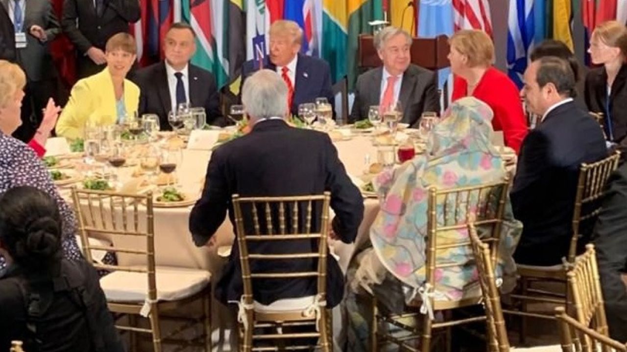 Yemek masasında Trump'ın yanı sıra BM Genel Sekreteri Antonio Guterres, Almanya Başbakanı Angela Merkel ve Polonya Cumhurbaşkanı Andrzej Duda da yer aldı.