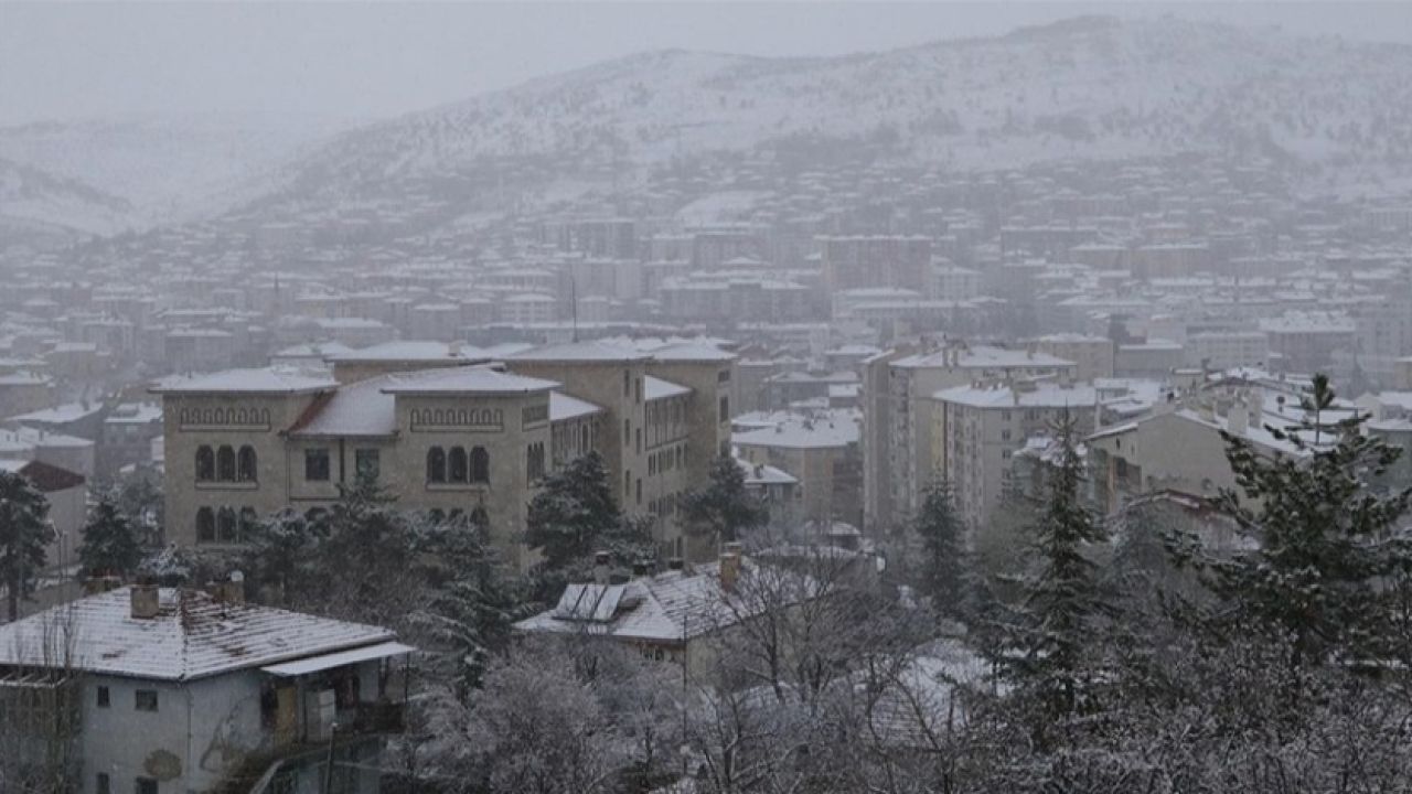 Yozgat'ta kar, yüksek yerleri, çatıları ve araçların üzerini beyaza bürüdü.