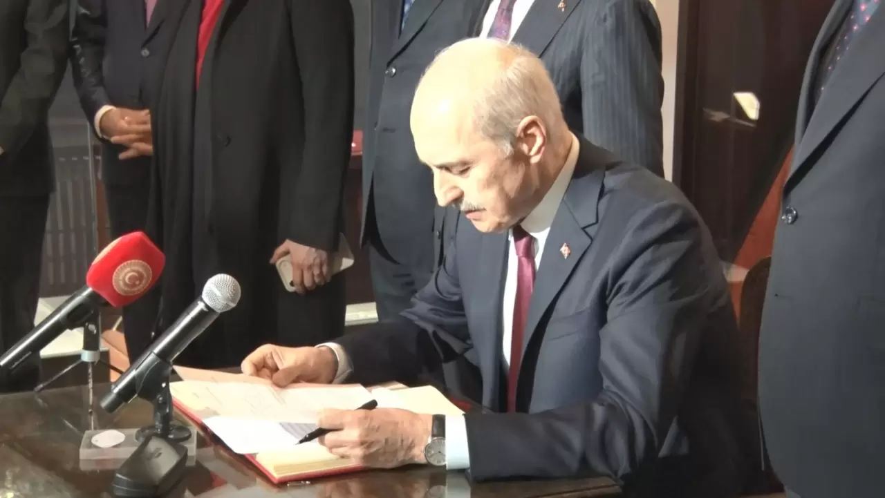 Konuşmasının ardından Kurtulmuş, 23 Nisan 1920’de Meclis’e çekilen ilk bayrak önünde Birinci Büyük Millet Meclisi Özel Defteri’ni imzaladı. Deftere yazdığı mesajda, “23 Nisan 1920, aziz milletimizin her türlü yokluğa ve kuşatmaya rağmen iradesine sahip çıktığını tüm dünyaya ilan ettiği tarihi bir dönüm noktasıdır” ifadelerine yer verdi.