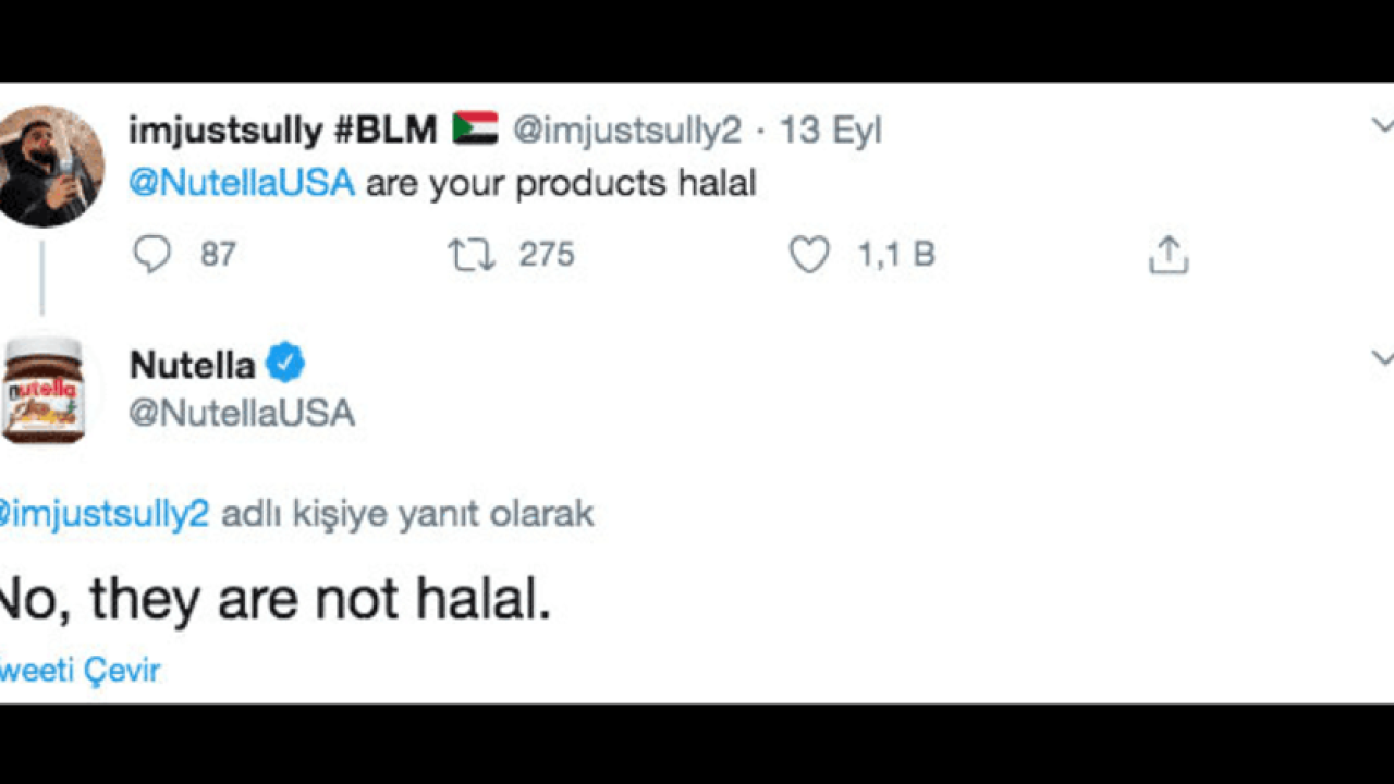Geçtiğimiz günlerde Nutella firması sosyal medyadan ‘helal değiliz’ açıklaması yapınca çok tepki görmüştü. Tepkilerin ardından bir açıklama daha yaparak ‘yüzde 90 helaliz’ diyerek kendilerine ayrı bir tepki ortamı daha oluşturmuşlardı.