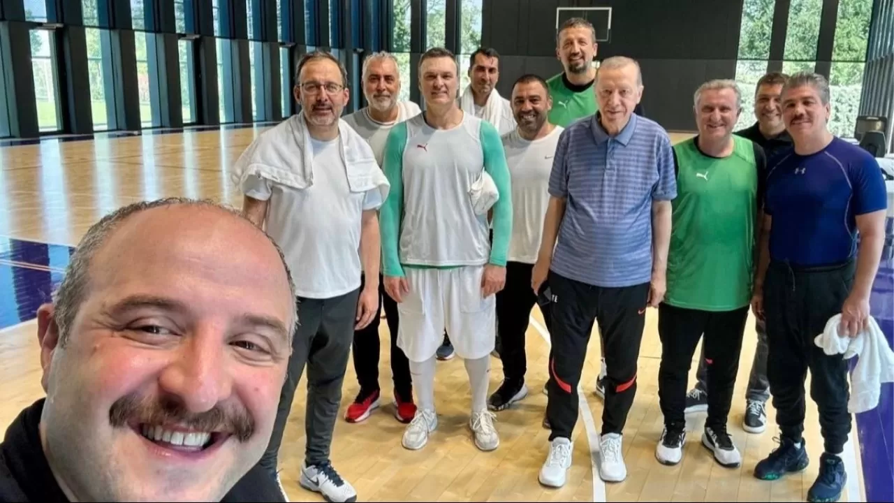 TBMM Sanayi, Ticaret, Enerji, Tabii Kaynaklar, Bilgi ve Teknoloji Komisyonu Başkanı Mustafa Varank, Cumhurbaşkanı Recep Tayyip Erdoğan'la oynadıkları basketbol maçının ardından fotoğraf paylaştı.
