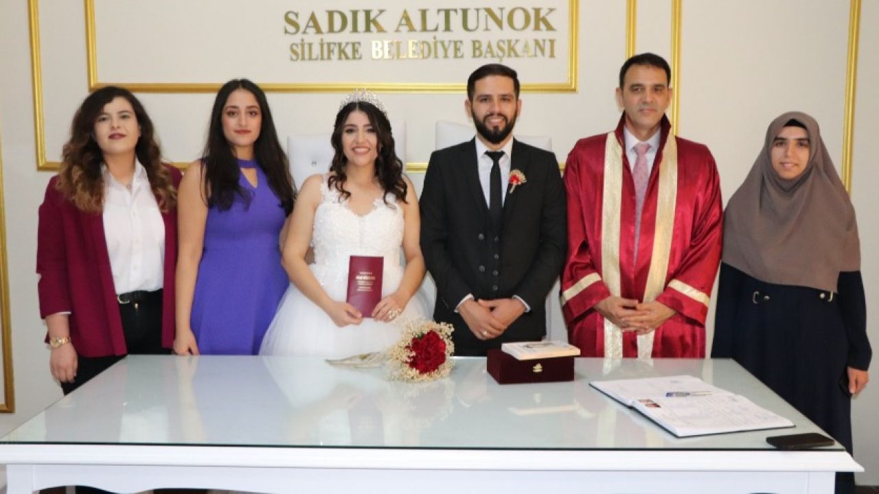Silifke Belediyesi Nikah Salonunda düzenlenen nikah töreniyle dünya evine giren genç öğretmenler Tuğçe ve Musa Çetin çiftini tebrik ederek mutluluklar dileyen Silifke Belediye Başkanı Sadık Altunok, evlenme cüzdanını gelin hanıma teslim etti.