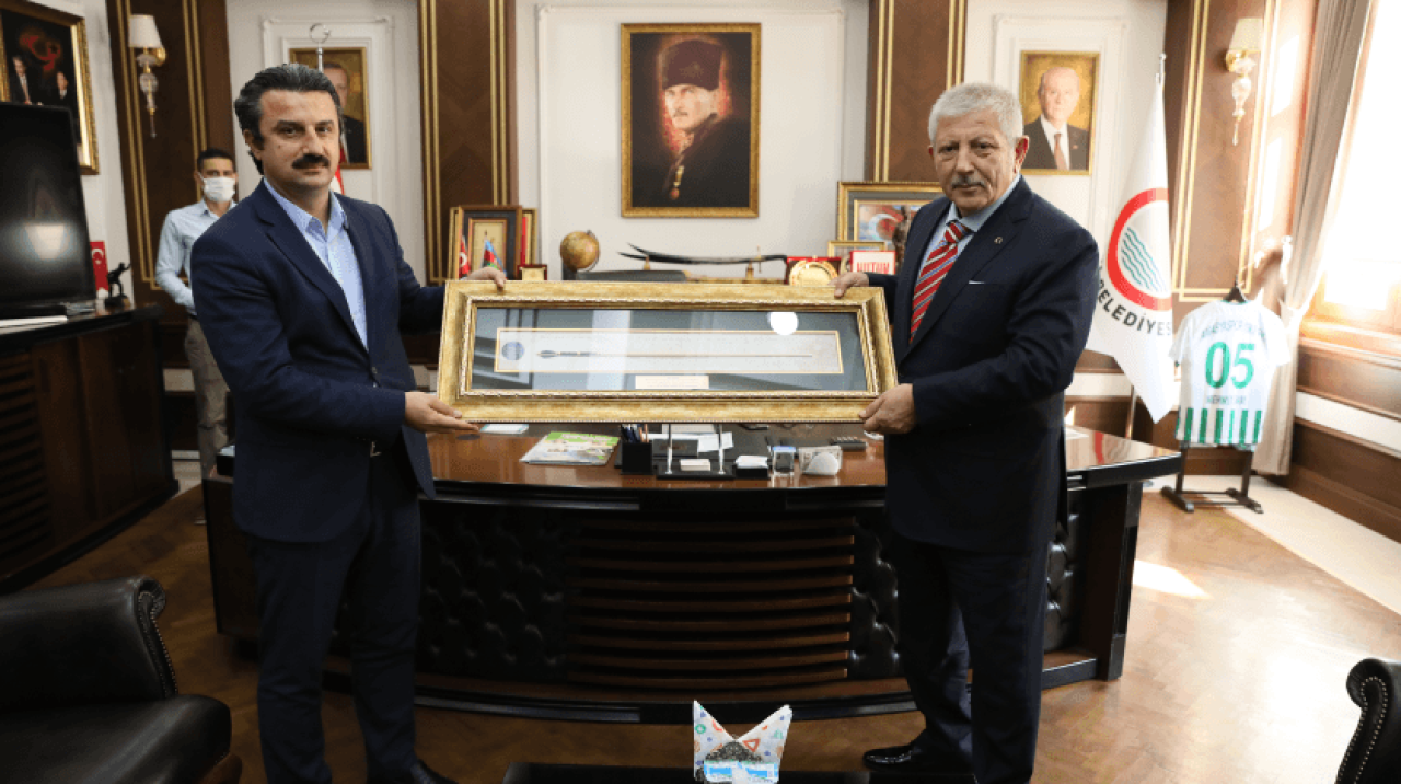 Samimi bir ortamda sohbet havasında geçen ziyaretin sonunda Okçuluk Vakfı Başkanı Erdoğan, Başkan Sarı’ya günün anısına hediye takdiminde bulundu.