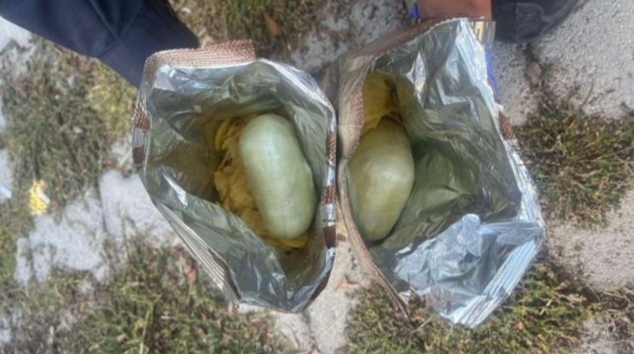 Araçta yapılan aramada 2 cips paketi içerisinde 1 kilogram toz esrar ele geçirildi.