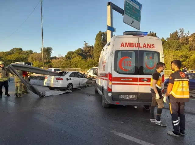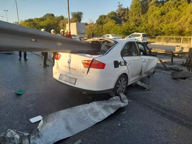 Otomobil, bariyerlere ok gibi saplandı. Çevredekiler itfaiye, polis ve sağlık ekiplerine haber verdi.